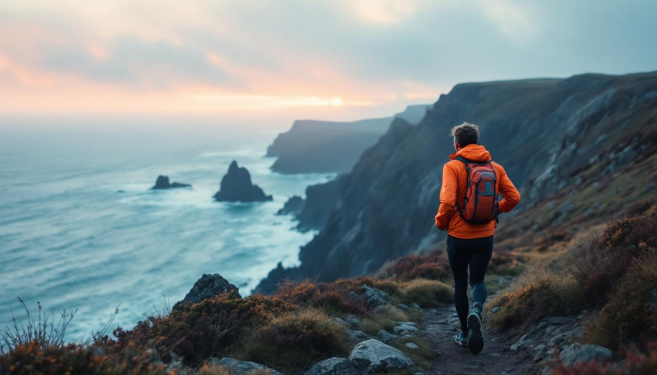 Yates, lui, a tracé la ligne mètre après mètre. D'abord les falaises atlantiques de Cornouailles, puis Exmoor et ses landes, le Pays de Galles et ses vallées encaissées, la remontée par Preston, enfin les Highlands écossaises jusqu'au bout du bout. Un itinéraire qui condense à peu près tous les reliefs britanniques, avec la particularité insulaire de ne jamais offrir de vraie montagne mais d'empiler sans répit les bosses courtes et sèches. À l'échelle française, imaginez Hendaye–Dunkerque en courant, avec un ultra par jour pendant cinq semaines. Personne, ou presque, ne s'y colle.