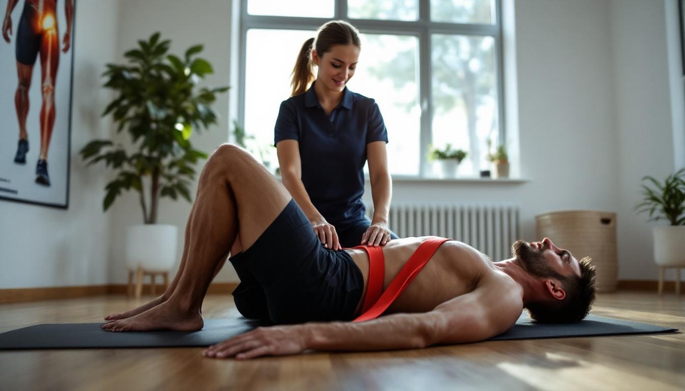 Le cœur du traitement, c'est la rééducation. Elle s'articule autour de trois axes. D'abord, le renforcement du moyen fessier et des rotateurs externes de hanche : clamshells lestés, pont fessier unilatéral, step-ups contrôlés, squats bulgares, marche latérale avec élastique. L'objectif est la force endurante, celle qui tient trois heures en montagne, pas seulement la force maximale. Ensuite, le travail du pattern de course : vidéo de foulée, correction du valgus dynamique, renforcement proprioceptif sur surface instable, parfois légère augmentation de cadence pour réduire l'amplitude d'oscillation de la bandelette. Enfin, un travail tissulaire sur les zones tendues — tenseur du fascia lata, grand fessier, quadriceps externe — par auto-massage ou thérapie manuelle, en gardant à l'esprit que l'étirement passif de la bandelette elle-même a une efficacité limitée.